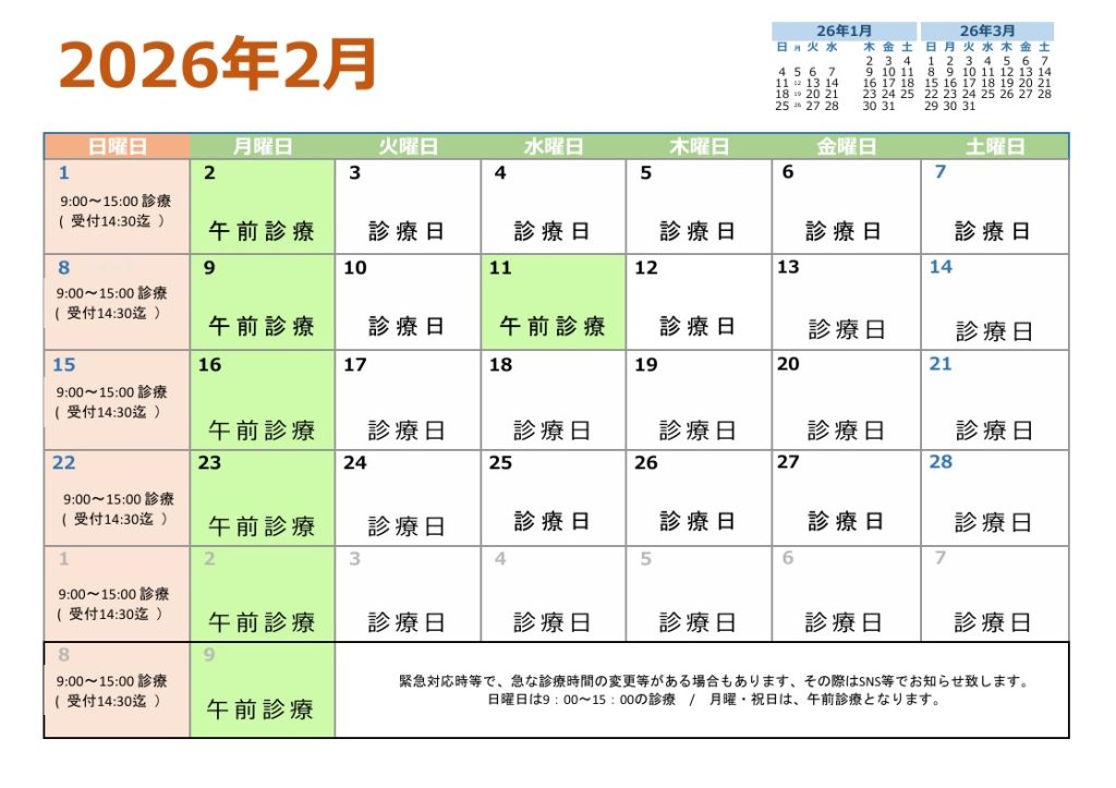2026年 2月の診療予定