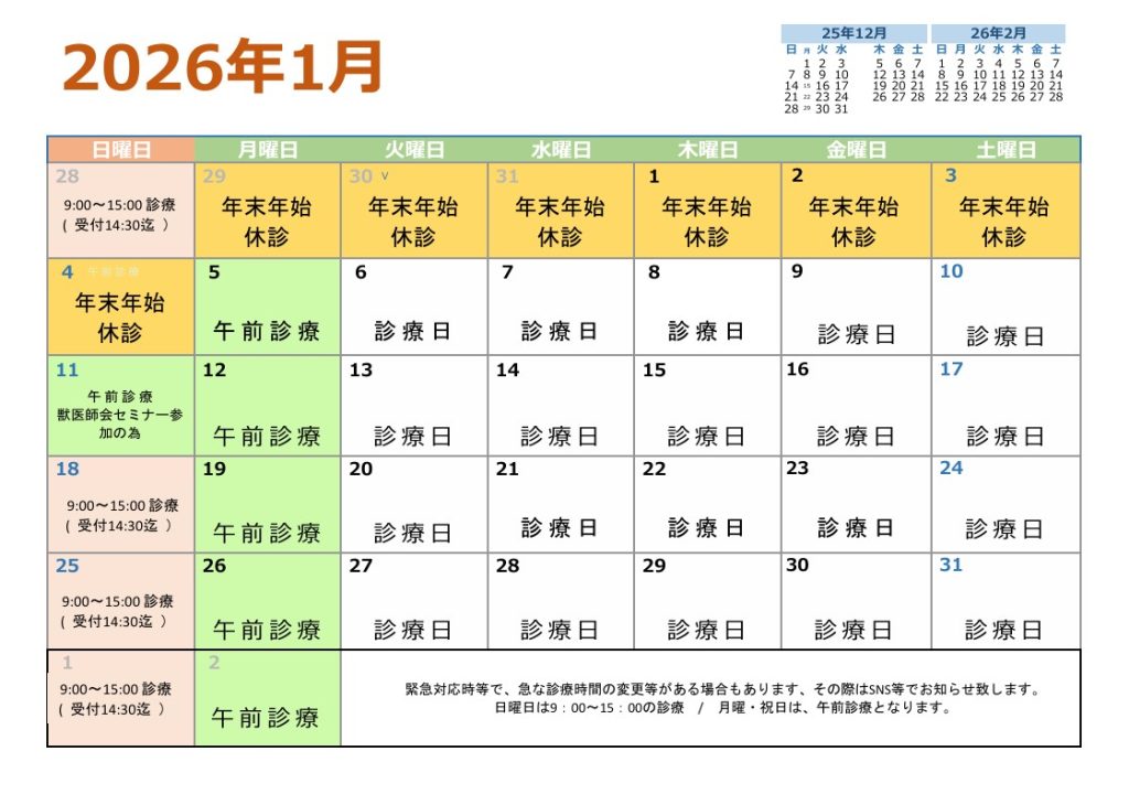 2026年 1月の診療予定